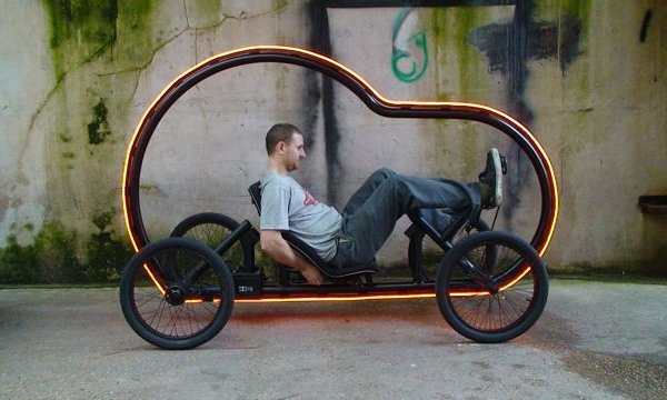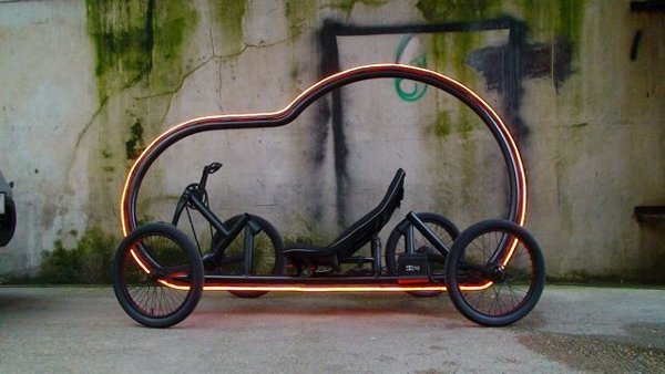Ben Wilson’s Artikar is a four-wheeled recumbent bicycle enclosed within a fluorescent light halo. The light may be all for show, but bikes tend to be as much about style as they are about transportation nowadays. Recumbent bikes can register some pretty high speeds, and this flashy light becomes a safety measure when Ben weaves through the busy traffic in downtown London. Nice work, Mr. Wilson.
